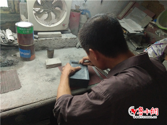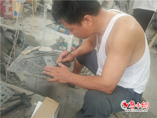 淄砚大师在进行雕刻创作