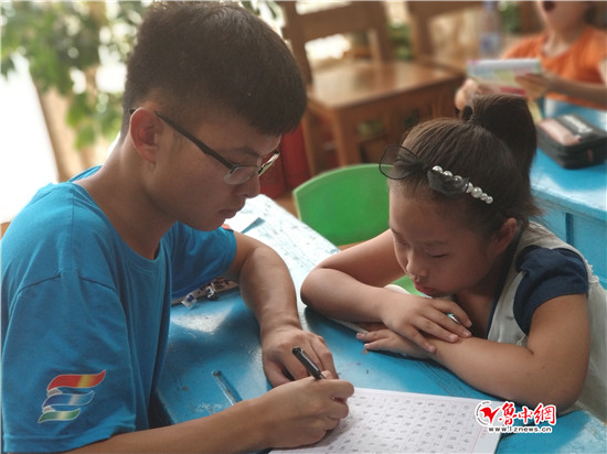 支教成员为学生教授硬笔书法书写技巧