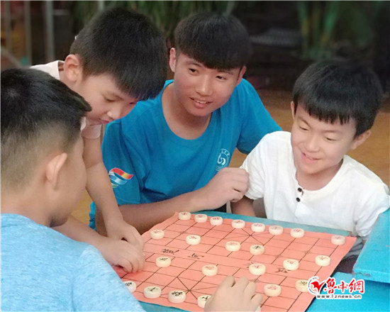 支教队员在讲授孩子们中国象棋