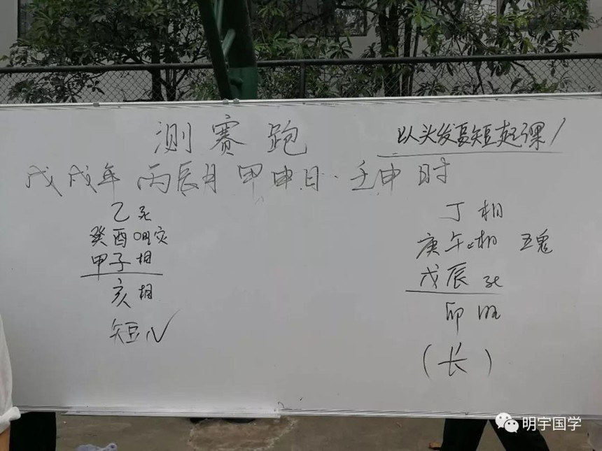 戊戌年,丙辰月,甲申日,壬申时下午老师带领全体学员户外游学测赛跑:男男赛跑,女女赛跑,男女赛跑,剪刀石头布;