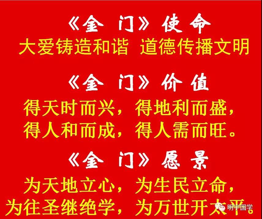 《金门》使命;大爱铸造和谐 道德传播文明《金门》价值;得天时而兴,得地利而盛,